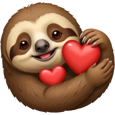 Perezoso con corazones en la cara y los ojos serrados sonriendo como enamorado emoji