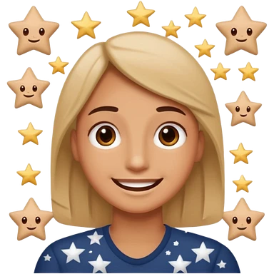 Perezoso que los ojos serán estrellas y este sonriendo tipo bimoji de iPhone emoji | AI Emoji Generator
