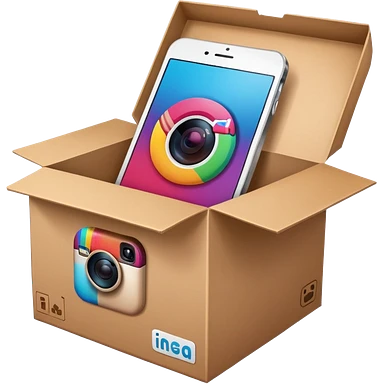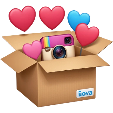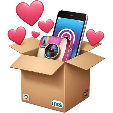 a box with an instagram logo on its face, open with swipe files inside and hearts, likes emoji