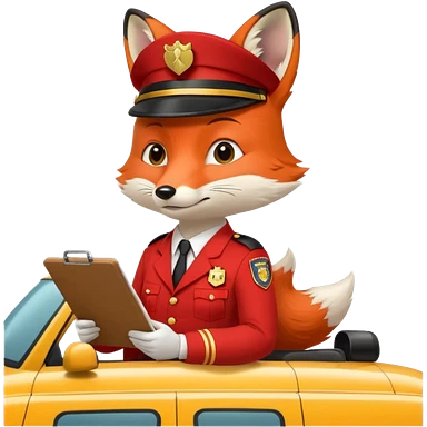 The Fox Is Actually Red Wearing A Officer Outfit Riding On The Taxi Writing On The Clipboard emoji