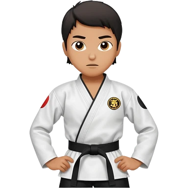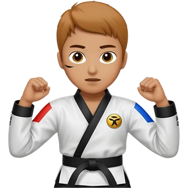 Perfecto pero el uniforme debe ser de taekwondo de ATA cinturón negro con un logo de mambo negra y realizando este gesto sonriendo 👍🏼 emoji | AI Emoji Generator