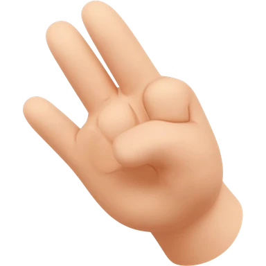 Una mano con los dedos índice, corazón y anular alzados. El meñique doblado debajo del pulgar emoji