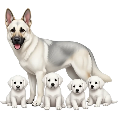 Perro pastor blanco con cachorros emoji