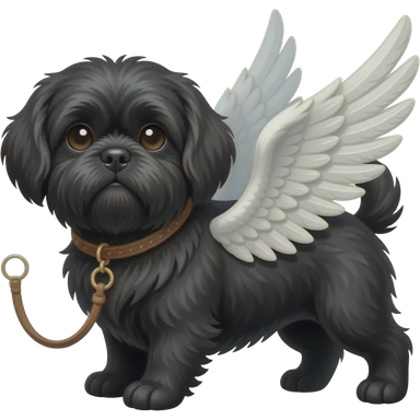 Perro shitzu color negro con plomo con alas emoji