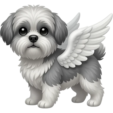 Perro shitzu color plomo con alas emoji