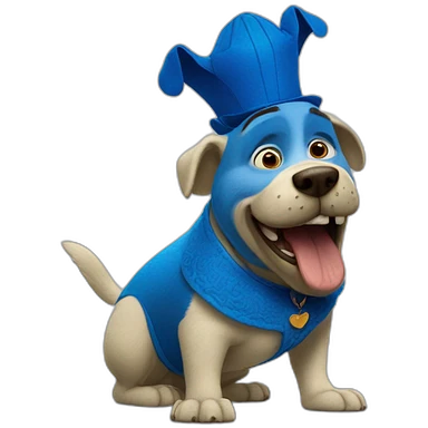 perro azul con payasos al lado bailando junto a shrek de la pelicula "shrek" emoji