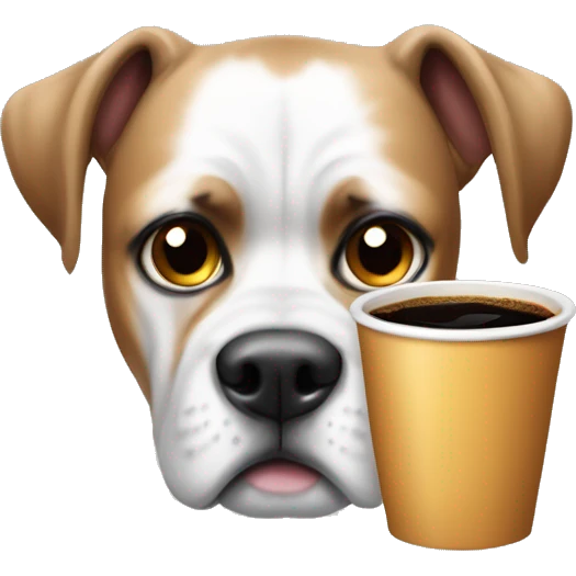 Perro boxer blanco con solo una mancha café en el ojo izquierdo emoji | AI Emoji Generator
