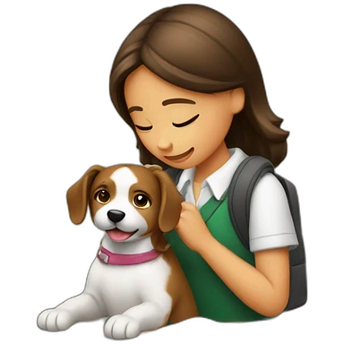 Niña cabello café con un perrito blanco orejas hush puppy emoji
