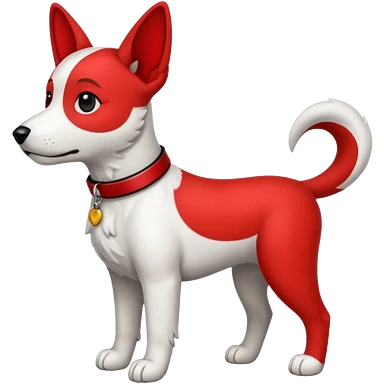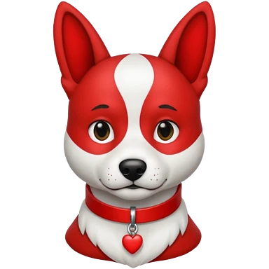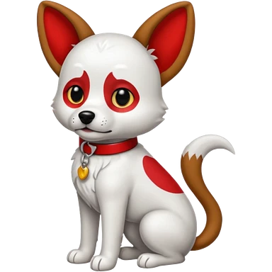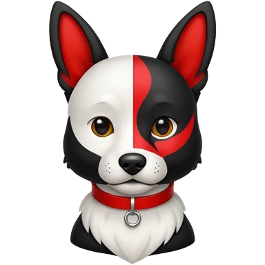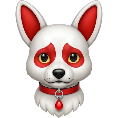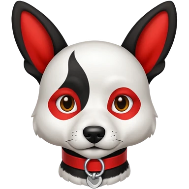 Perro blanco con orejas negras con un collar rojo sentado emoji