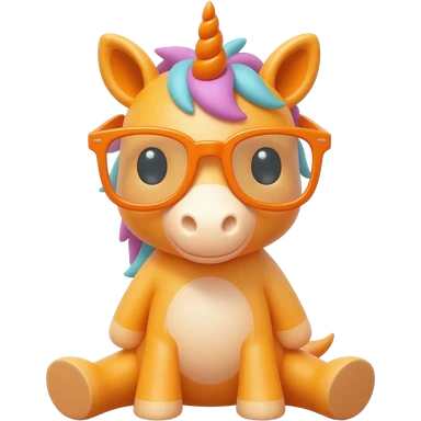 Unicornio naranja bebé sentado con gafas pateadas naranja emoji