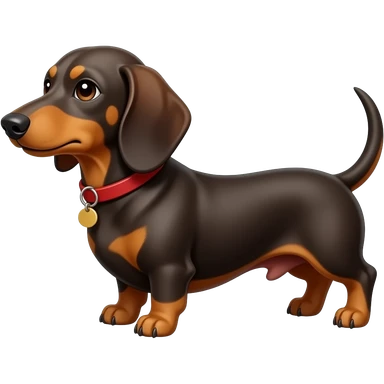 Un perro salchicha de color marrón oscuro con manchas blancas y ojos marrones emoji