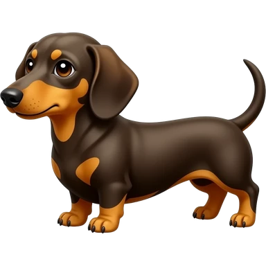 Un perro salchicha de color marrón oscuro con manchas blancas y ojos marrones emoji