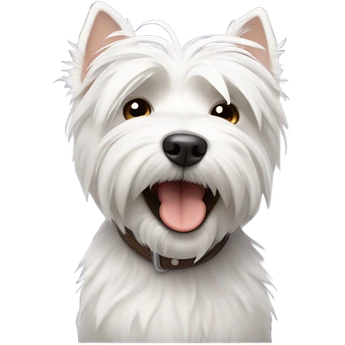 Perro westie con un hombre con pelo de punta y gafas emoji