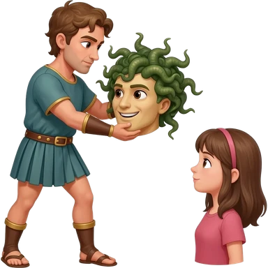 Perseus was winging his way back to Greece with the head of Medusa and spotted the girl (she has long brown hair) emoji | AI Emoji Generator