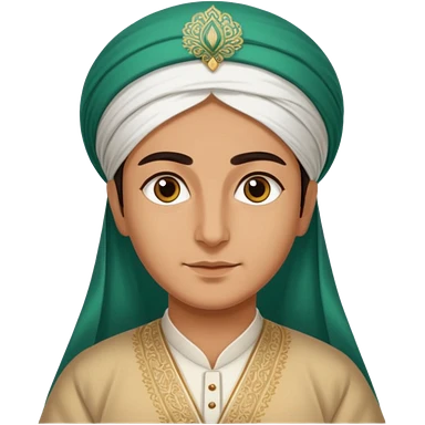 An old man sits on a Persian rug with a rosary, a large ring, a long beard and hair, but he is handsome and modern, wearing a robe and a turban, and looks at the camera with amazement. emoji