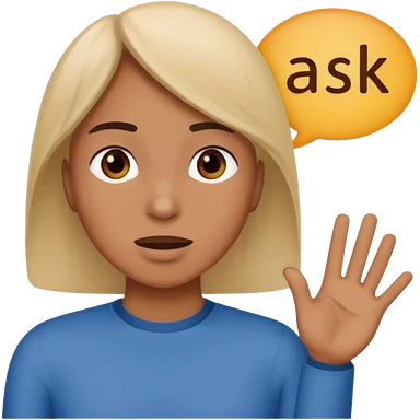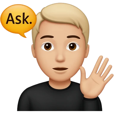 Person speaking, word saying ASK at the top emoji