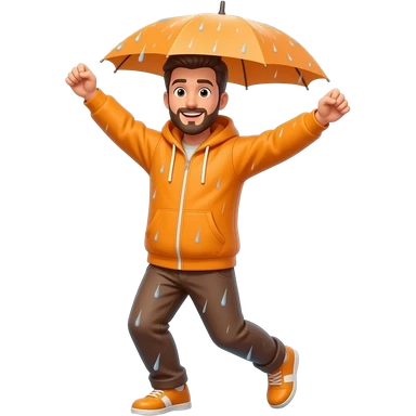 person wearing orange dancing in the rain emoji