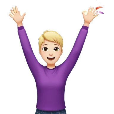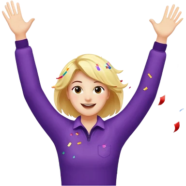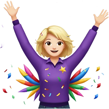 persona feliz con los brazos hacia arriba saltando y explosivos detras y confites volando emoji