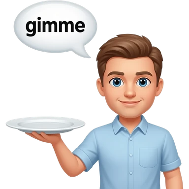 person with plate and a word above their head that says "gimme" emoji