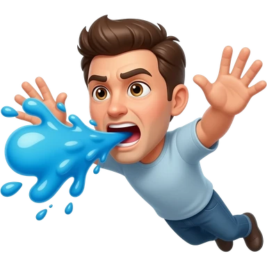 Person flying mad blue liquid out of his mouth emoji