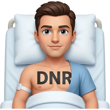 person with "DNR" tattooed across their chest. laying in hospital bed emoji
