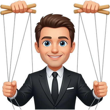 a group of people, with one person in blue being highlighted by a magnifying glass. emoji