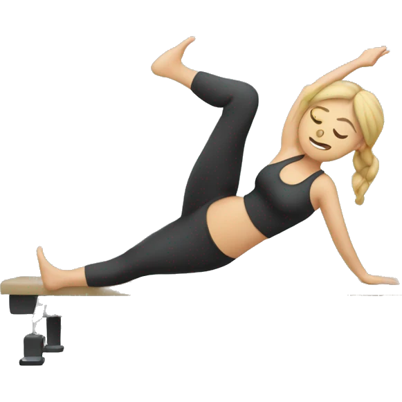 Minimalist, flat-design style emoji of a person doing pilates on a cadillac reformer, hanging upside down with legs open in a split position emoji