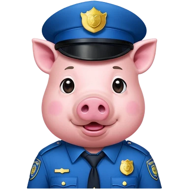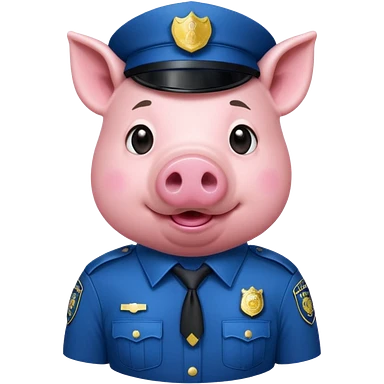 a pig, upright, in a police officer uniform, drooling, eyes looking to the bottom left emoji