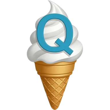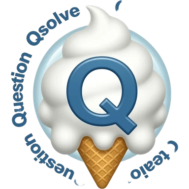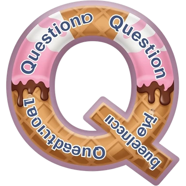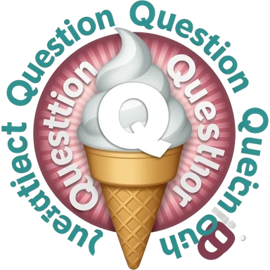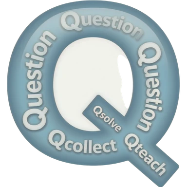 The big letter "Q" in the center. Smaller the Words "Question", "Question", "Question", "Qsolve", "Qcollect" und "Qteach" around it in a comic style ice cream cone emoji
