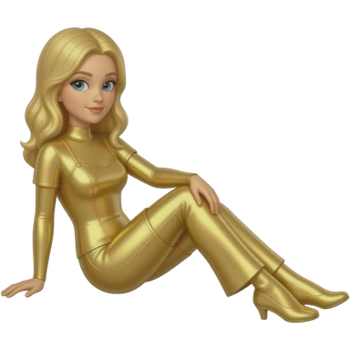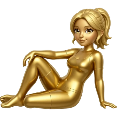 Create a reclining female figure in metallic gold. The background is white. The final result must have maximum resolution, high contrast, and extreme sharpness. Illustration style: Cartoon – Art Deco – 2D emoji
