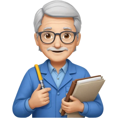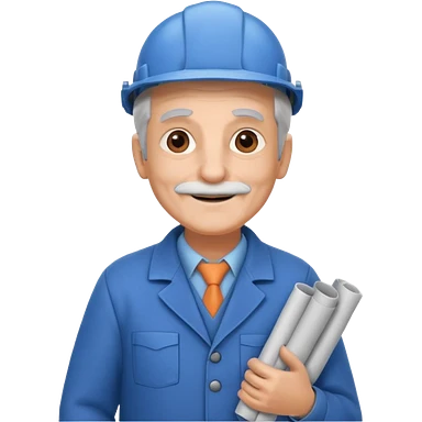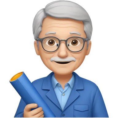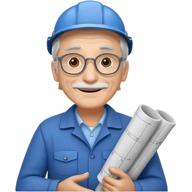 A wise old engineer with warm smile, blueprint rolled under his arm. emoji