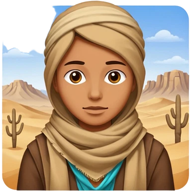 person living in desert just face, hair showing emoji | AI Emoji Generator