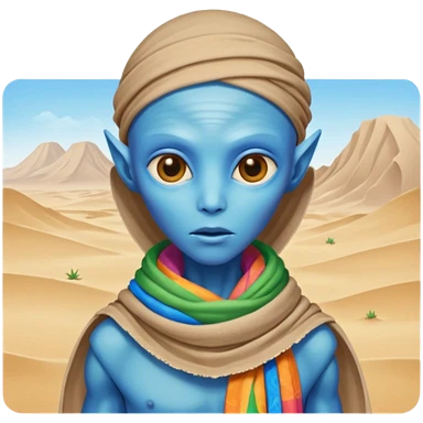 alien living in desert, very colorful, accessories, just face emoji