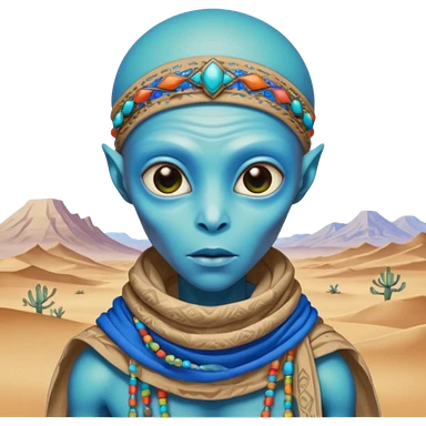 alien living in desert, colorful, accessories, just face emoji