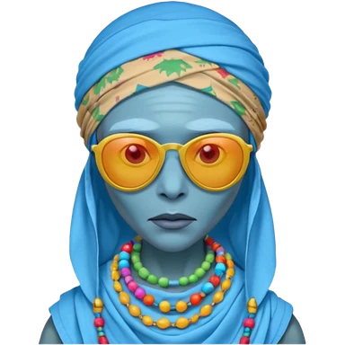 person living in desert just face, hair showing, heavy accessory emoji