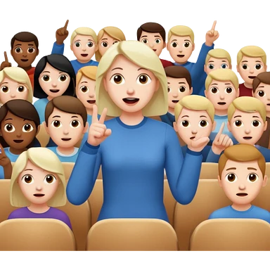 A person in the front row feeling scared, with the audience behind them POINTING FINGER. emoji