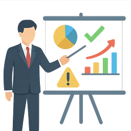 content expert person giving a presentation with charts emoji