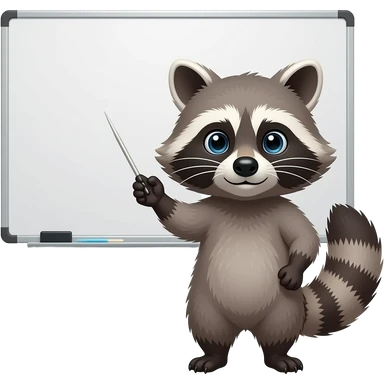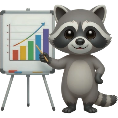 raccoon presenting in front of a whiteboard with a colored chart emoji