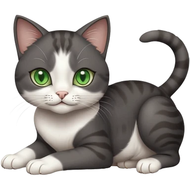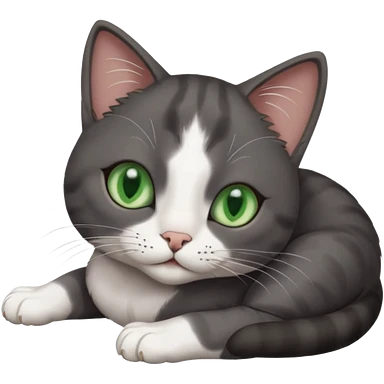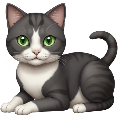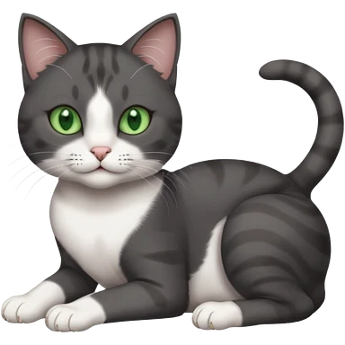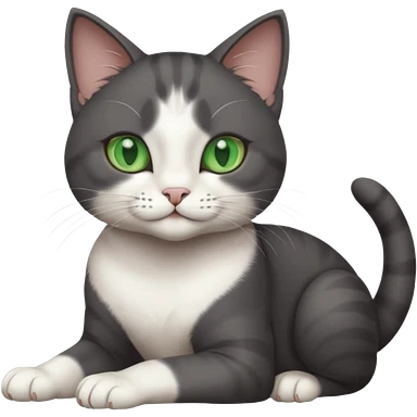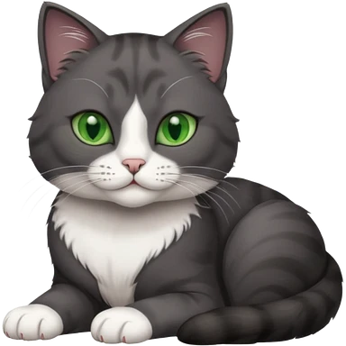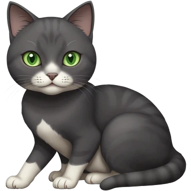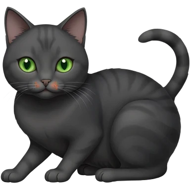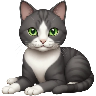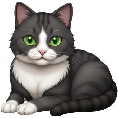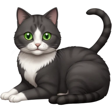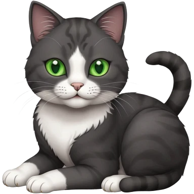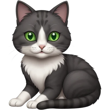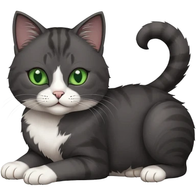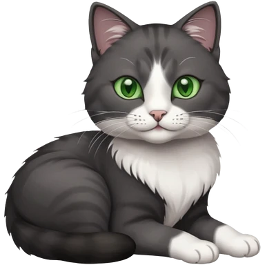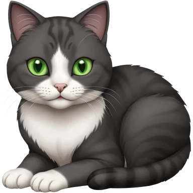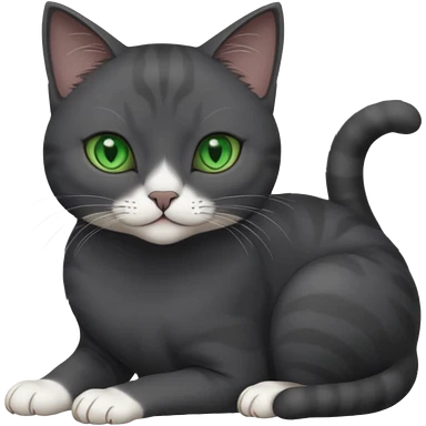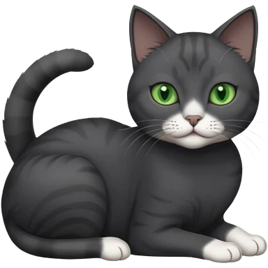 beautiful female solid dark grey cat with green eyes, white toes/paws and white patch on her chest rolling over emoji