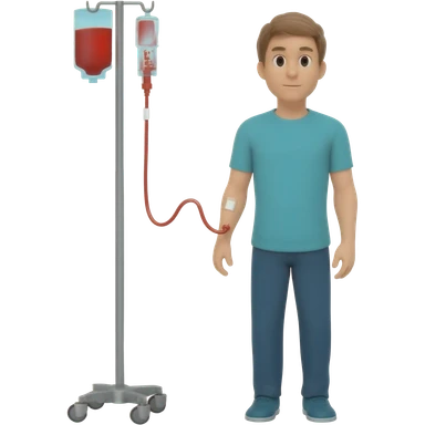 person sitting in a hospital chair receiving a blood transfusion, blood bag connected to their arm, calm expression emoji | AI Emoji Generator