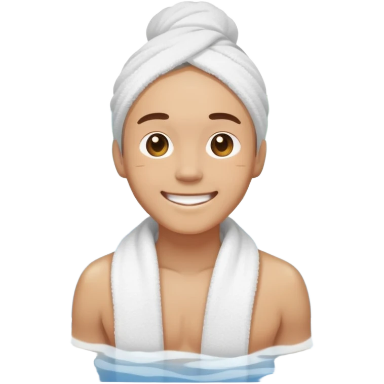 Person smiling in hot spring with steam rising emoji | AI Emoji Generator