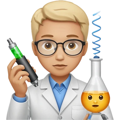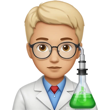 chemist emoji, bald person in a lab coat, testing chemicals in test tubes emoji