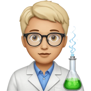 chemist person with very short hair in a lab coat testing chemicals in test tubes emoji
