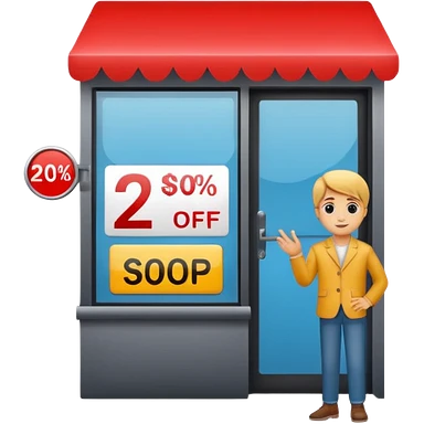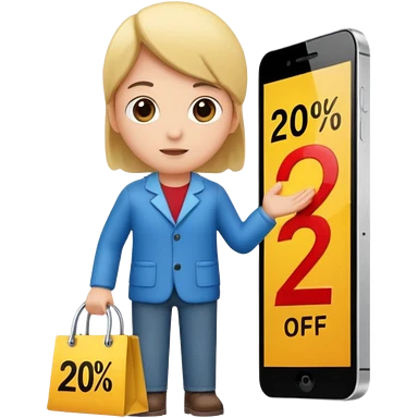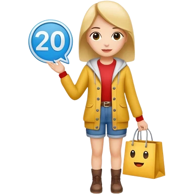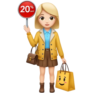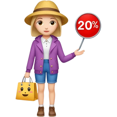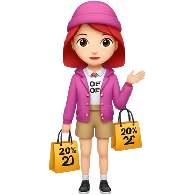 Person who is waiting the sale promotion with 20% off sign, wearing cute outfit emoji