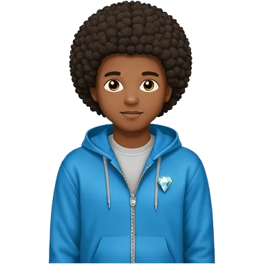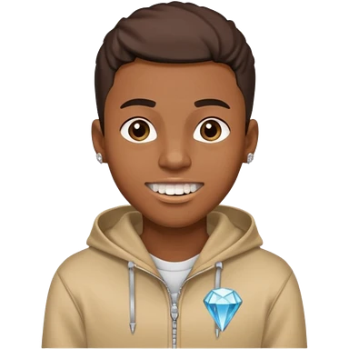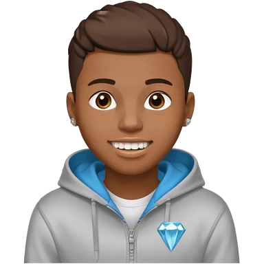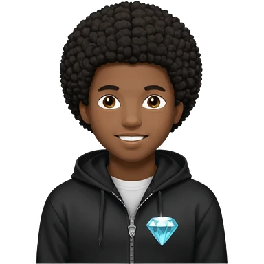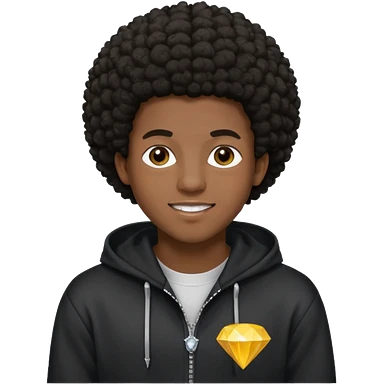 Black young guy who haves afro haircut ,zip hoodie and with a diamond grillz in her tooth emoji