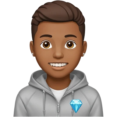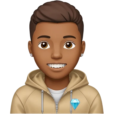 Black young guy who haves taper haircut ,zip hoodie and with a diamond grillz in her tooth emoji