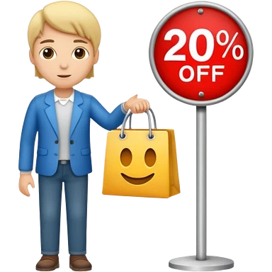 Person who is waiting the sale promotion with 20% off sign, wearing cute outfit emoji | AI Emoji Generator