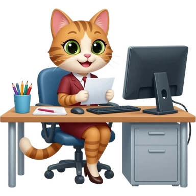 female cat getting a promotion at work emoji