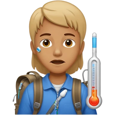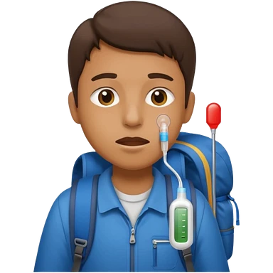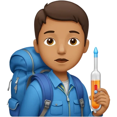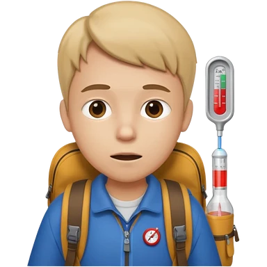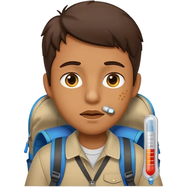 person with backpack and thermometer in their mouth emoji | AI Emoji Generator