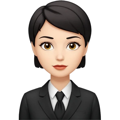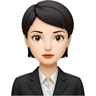 a white woman who has black short hair on interview emoji